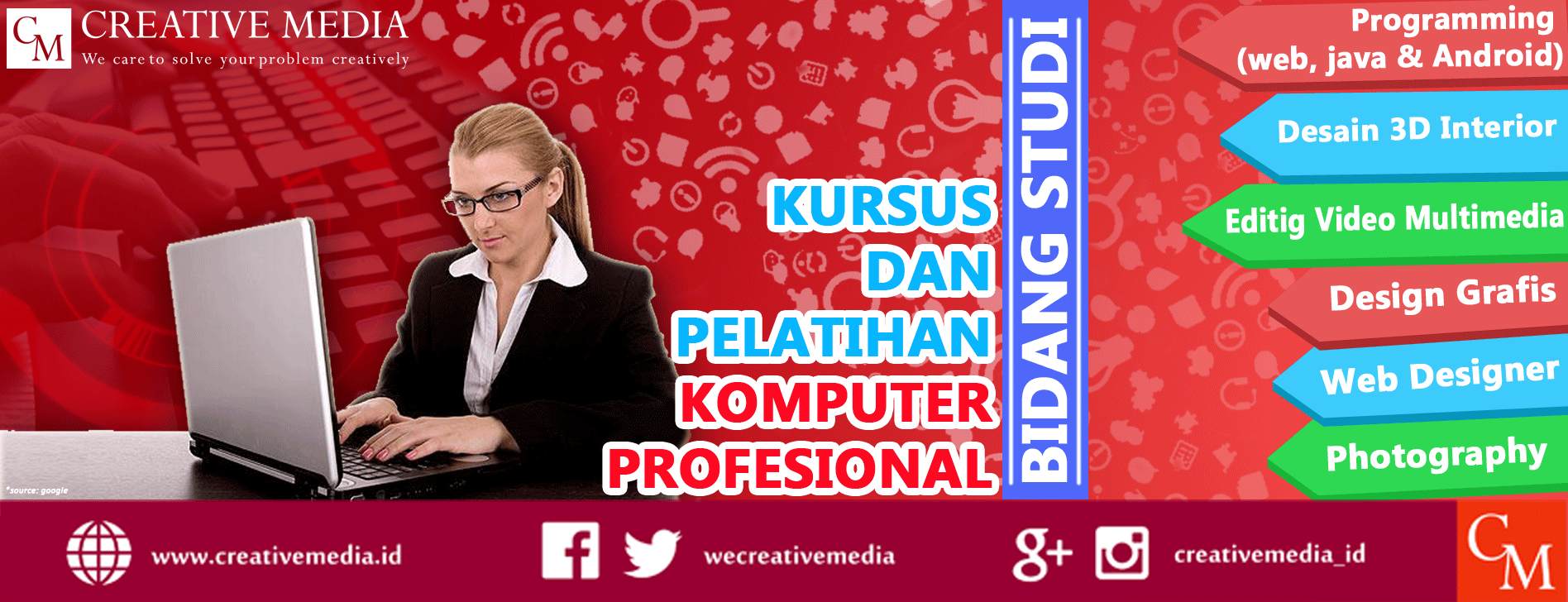 Untuk menguasai segala tentang komputer tentunya diperlukan latihan yang konsisten dan berkelanjutan. Banyak sekali lembaga-lembaga yang menawarkan pelatihan komputer, salah satunya adalah Creative Media lembaga yang dapat dipertimbangkan bila anda ingin menjalani pelatihan komputer dengan professional tutor yang bepengalaman dengan penawaran terbaik di Surabaya.
