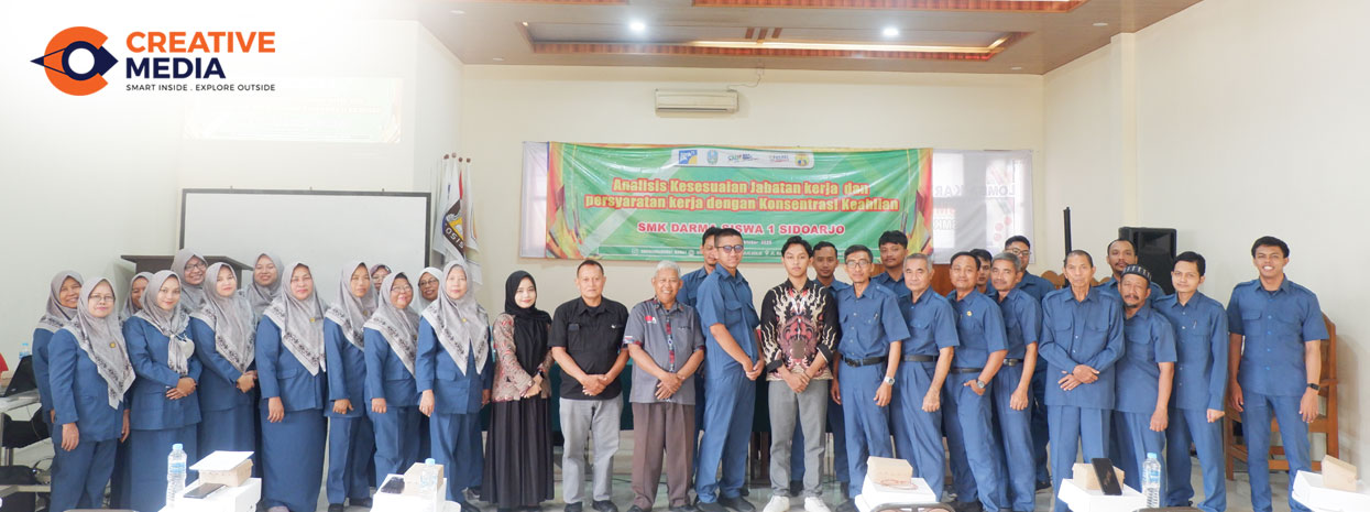Creative Media kembali menunjukkan komitmennya dalam mendukung pendidikan vokasi. Pada kesempatan ini, Creative Media hadir sebagai narasumber dalam Workshop Analisis Kesesuaian Jabatan Kerja dan Persyaratan Kerja di SMK Darma Siswa 1 Sidoarjo. Kegiatan tersebut diikuti oleh guru dari berbagai jurusan. Selain itu, workshop ini bertujuan memperkuat pemahaman guru mengenai hubungan antara kompetensi keahlian SMK dan kebutuhan nyata industri.