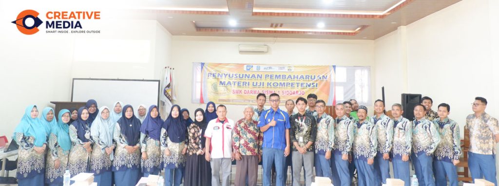 SMK Darma Siswa 1 Sidoarjo kembali mengambil langkah penting dalam meningkatkan kualitas pembelajaran. Sekolah menggelar Workshop Penyusunan Pembaharuan Materi Uji Kompetensi (Ujikom) sebagai upaya memperkuat kesiapan siswa menghadapi dunia kerja. Kegiatan ini diselenggarakan di aula sekolah dan diikuti oleh guru dari berbagai program keahlian, khususnya Teknik Komputer dan Jaringan (TKJ). Selain itu, SMK Darma Siswa 1 Sidoarjo menggandeng Creative Media sebagai mitra industri yang memberikan materi dalam hal pengembangan kurikulum serta pembaharuan materi uji kompetensi konsentrasi keahlian TKJ.